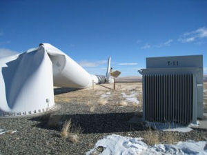 - Iberdrola, the Spanish wind energy producer, blamed falling Suzlon Energy turbine blades on a one-tie accident, the Bloomberg News in North Dakota reported in May 18, 2011, suspending operations at its wind farm in North Rugby, North Dakota. The same model, however, suffered cracked blades starting in 2007, prompting a $100 million global retrofit.