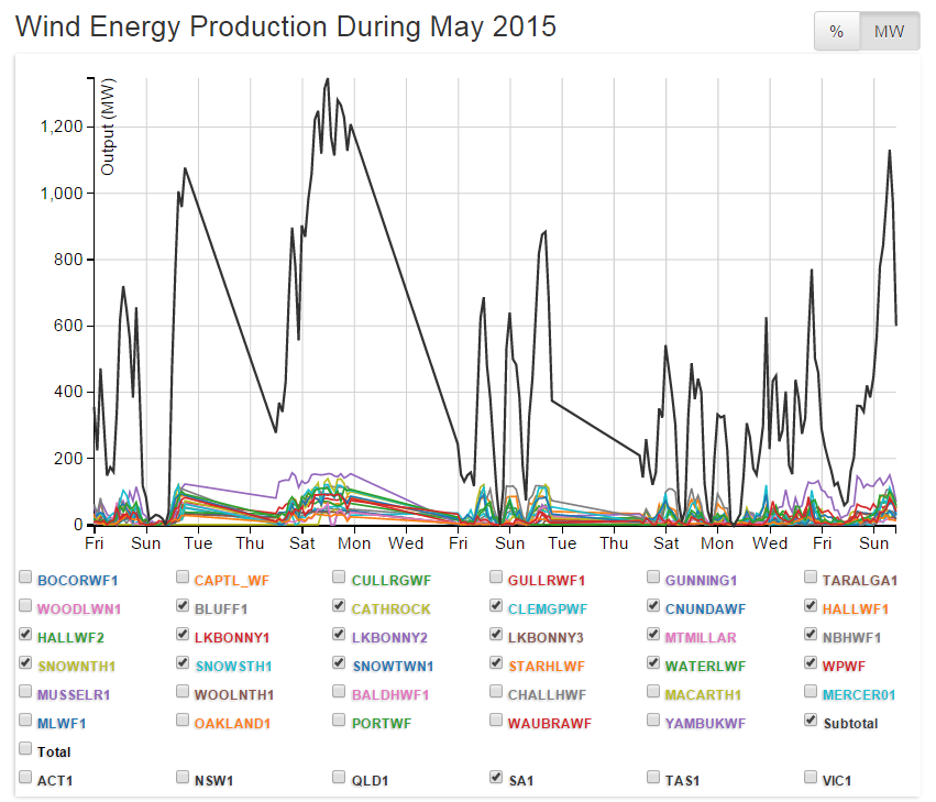 South Australians dwell in Australia’s economically dismal ‘wind power capital’. Their attempt to rely on these things as a ‘meaningful’ power source sees them not only paying the highest power prices in the Nation by a mile (if not the world, on a purchasing power parity basis) – but sees them glaring at each other through Stone Age ‘gloom’ when its wind power output totally collapses, on a totally unpredictable basis: